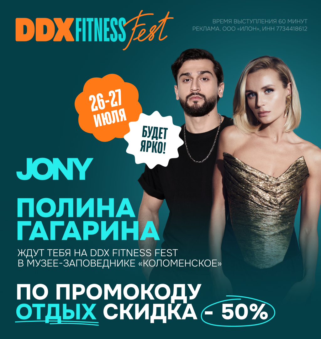 Переходи по ссылке: https://ddx-fest.ru и покупай билеты со скидкой 50% по промокоду ОТДЫХ!
